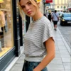 Tags: Fashion, Women’s Clothing, T-Shirt, Striped, Waist-Defining, Black, Comfortable, Stylish, Versatile, Chic.