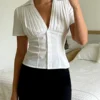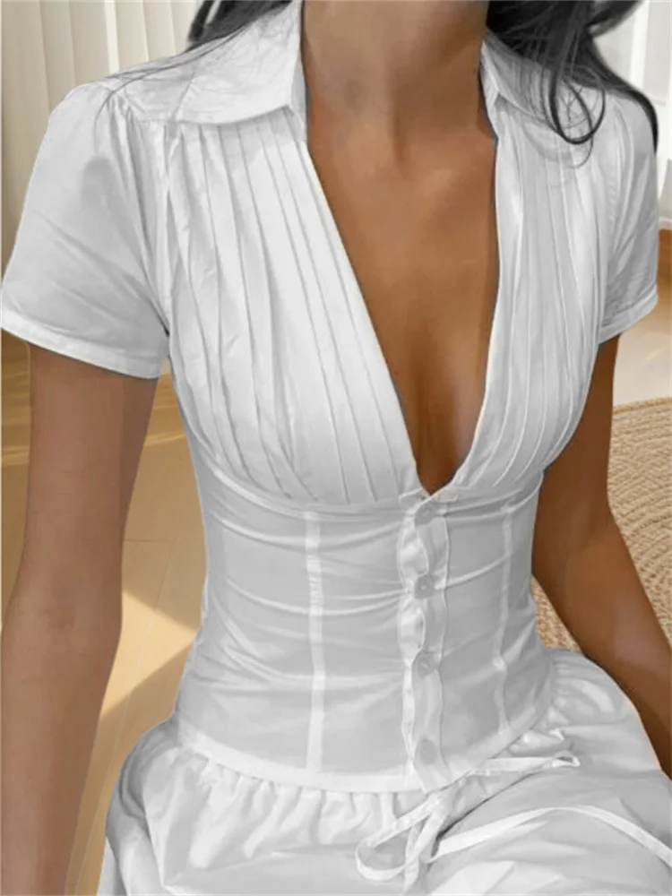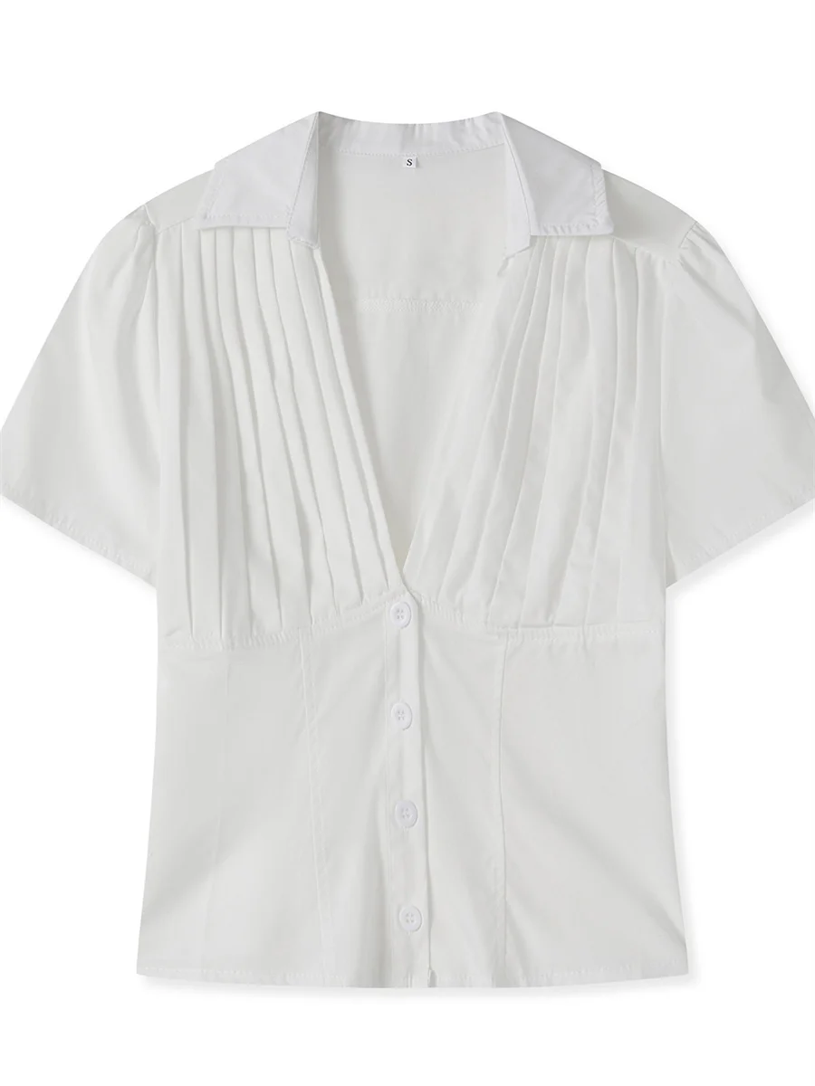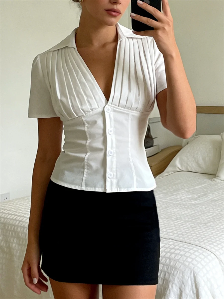 Women Summer Tops Fashion Style V-Neck Button Down Short Sleeve Shirts Casual Chic Blouses New