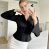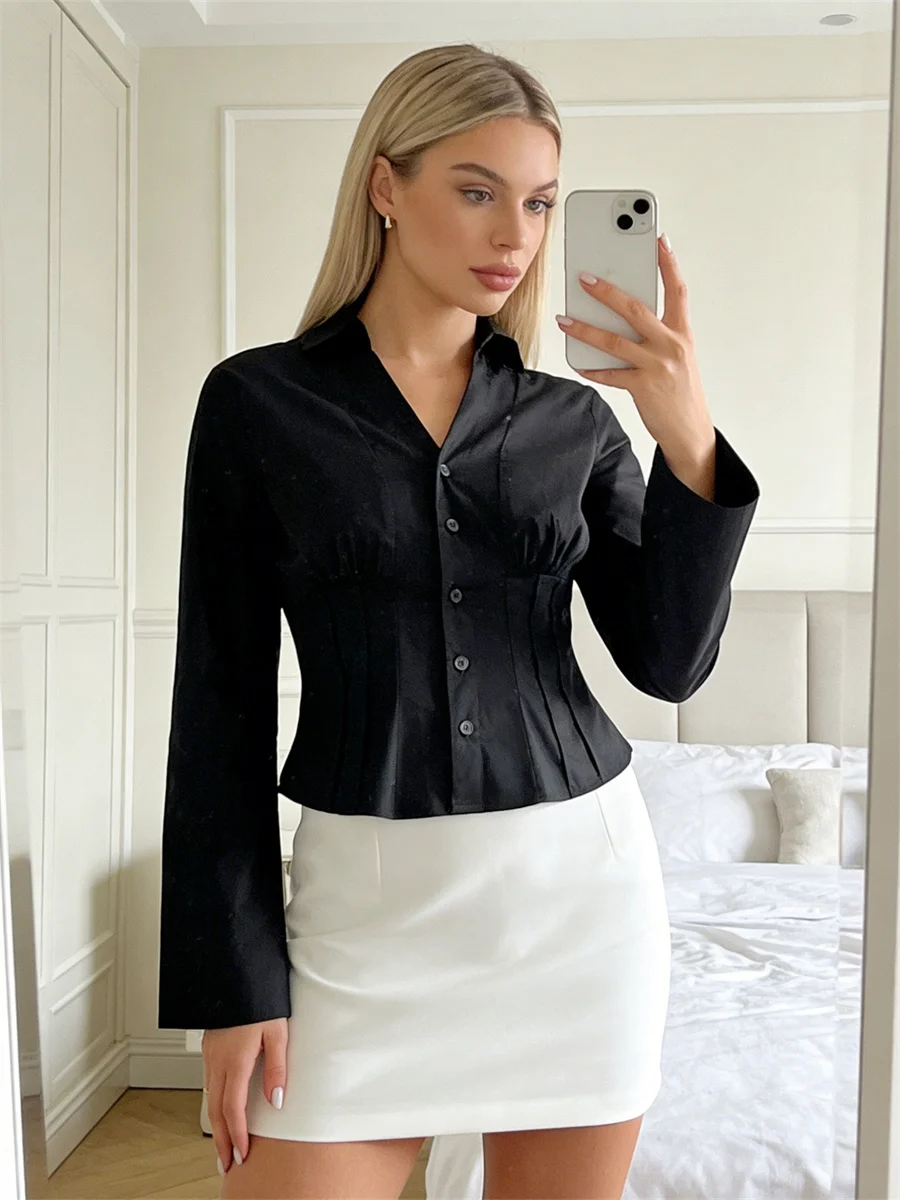 Womens Button Down Shirts Long Sleeve Lapel Collar Cinched Waist Tops Spring Fall Blouse